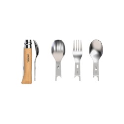 Σετ picnic Opinel με σουγιά No.8 inox, πιρούνι & κουτάλι που στερεώνονται στην ξύλινη λαβή του σουγι..