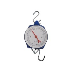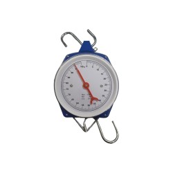 Ζυγαριά κρεμαστή, αναλογική, μπλε χρώματος με 2 γάντζους και μέγιστη ικανότητα ζύγισης τα 50kg. Υποδ..