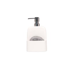 Dispenser κουζίνας Brighite από ρητίνη, λευκό με αντλία σε χρώμα νίκελ και θήκη για το σφουγγάρι της..