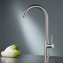 Μπαταρία νεροχύτη Eurorama 702515-111 inox με υψηλό περιστρεφόμενο ρουξούνι. Αποσπόμενο ντους, άθραυ..