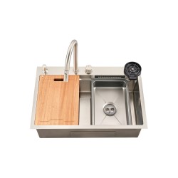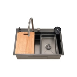 Επικαθήμενος νεροχύτης Hydra H-8050-TS5B-BK ανοξείδωτος SS 304 μαύρος με μια γούρνα & βρύση. Διαστάσ..