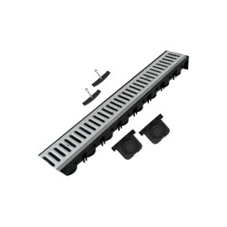 Κανάλι αποστράγγισης SIAGRIS μαύρο πλαστικό 1m (PP1302) με γαλβανισμένη σχάρα (PP1306), 2 μαύρα τερμ..