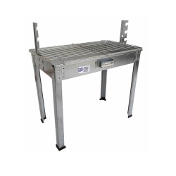 Γαλβανιζέ ψησταράκι Ελληνικής παραγωγής για ψήσιμο στα κάρβουνα με θήκη για σούβλα και σχάρα, εύκολο στη χρήση και στο στήσιμο. Κατασκευασμένη εξ'ολοκλήρου από μέταλλο γαλβανιζέ για μέγιστη αντοχή στη σκουριά και τις διαβρώσεις. Διαθέτει ενσωματωμένη σχάρα που αφαιρείται και καθαρίζεται εύκολα, χειρολαβή στη μπροστινή πλευρά για διευκόλυνση στη μεταφορά, 2 θέσεις τοποθέτησης της σούβλας και αντιολισθητικά πατάκια στα πόδια για μεγαλύτερη σταθερότητα και αποφυγή τυχόν ολισθήσεων. Διαστάσεις 50x32x54.