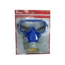 Χημική μάσκα μονού φίλτρου με γυαλιά προστασίας μπλε χρώματος. Προστατεύει από την τοξική σκόνη, του..