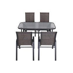 Σετ τραπεζαρίας Denim 5 τεμαχίων (4 πολυθρόνες & 1 τραπέζι) μεταλλικό ανθρακί 120x70cm [06.8080.1]