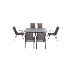 Σετ τραπεζαρίας Denim 7 τεμαχίων (6 πολυθρόνες & 1 τραπέζι) μεταλλικό ανθρακί 160x90cm [06.8082.1]