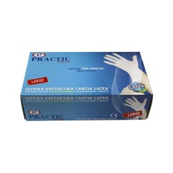 Ιατρικά εξεταστικά γάντια latex της Practic, μέγεθος large, σε συσκευασία 100 τεμαχίων. Εξαιρετικής ..