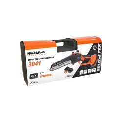 Αλυσοπρίονο Krausmann 3041 mini 20cm BL επαναφορτιζόμενο 21V με 2 μπαταρίες 2.0 Ah Li-Ion και φορτισ..
