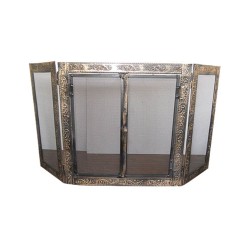 Κάλυψη τζακιού Κλαπάκης τρίφυλλη με πορτάκια μαύρο-χρυσό πατίνα