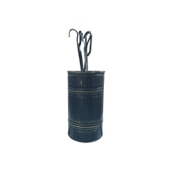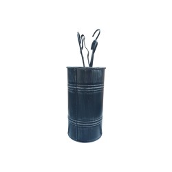 Σετ τζακιού πολυτελείας Κλαπάκης με 4 εργαλεία για το τζάκι και στρογγυλό κουβά μαύρο-ασημί πατίνα [11-71]